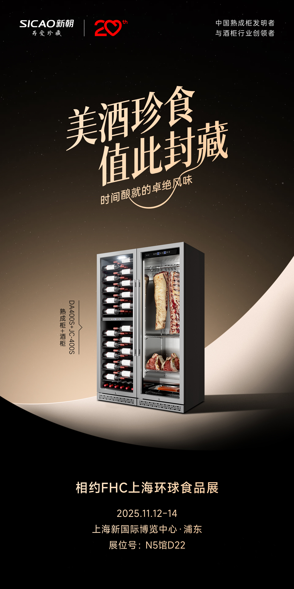 2025年11月12日-14日,SICAO新朝将携熟成柜&酒柜旗舰产品亮相FHC上海环球食品展,诚邀各界朋友届时莅临参观与交流,体验前沿的干式熟成与储酒科技,共话餐饮新机遇。