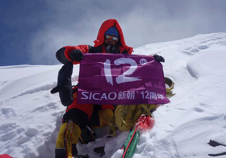 ·新潮公司创始人苗轲登顶世界最高峰——珠穆朗玛峰(海拔8848米),身体力行践行“锐意进取,勇攀高峰”的企业精神。