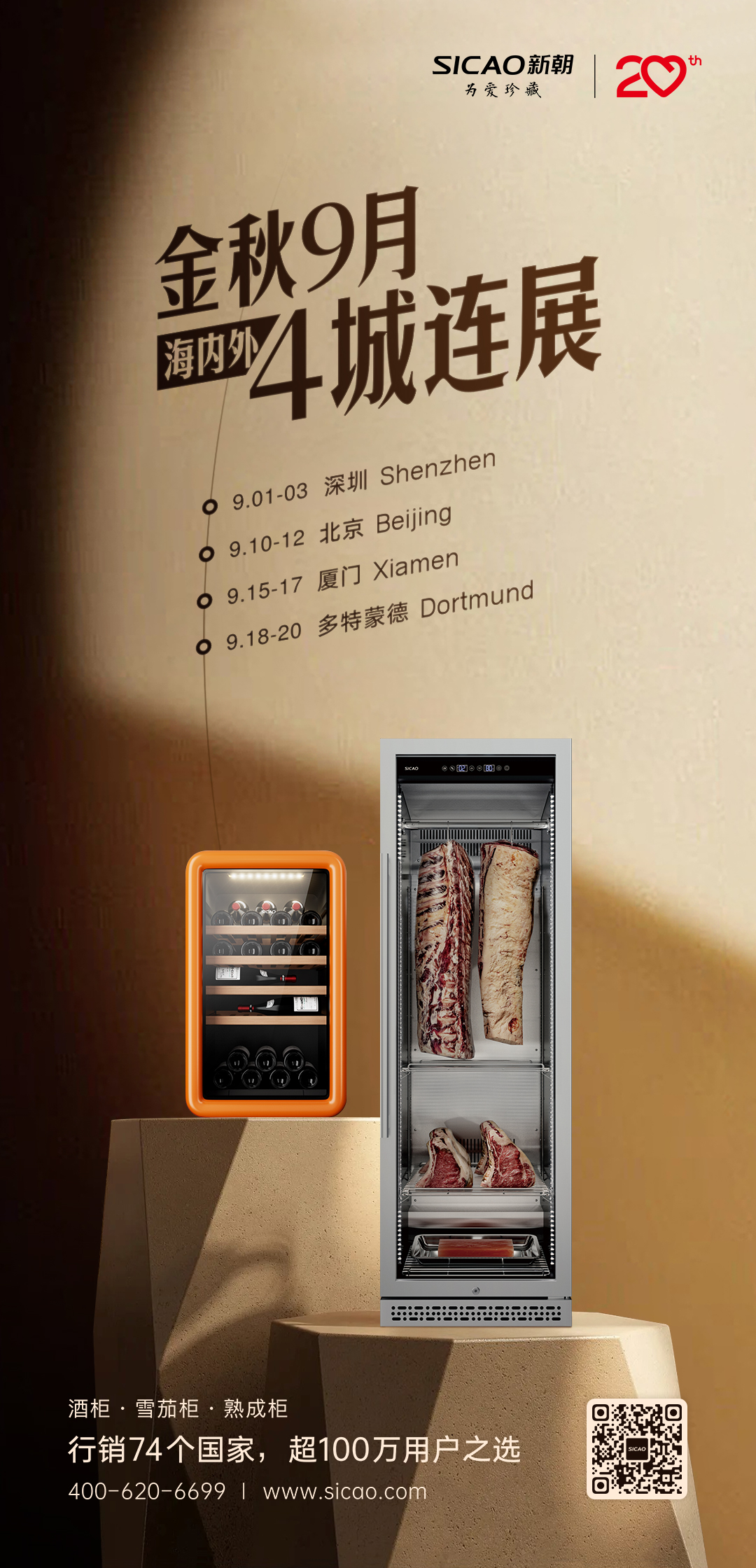 20年来,SICAO新朝始终行走在行业前沿,通过持续不断的创新,打造出一个又一个的行业标杆产品。从酒柜到雪茄柜,再到熟成柜,SICAO新朝保持专注和克制,聚焦高品质生活,矢志把三条产品线做精做深。截至目前,SICAO新朝的产品行销全球74个国家,产品力和品牌力日益坚实,成为中国酒柜、雪茄柜、熟成柜领域的佼佼者,更以自信开放的姿态走向世界,绽放中国智造的独特魅力。